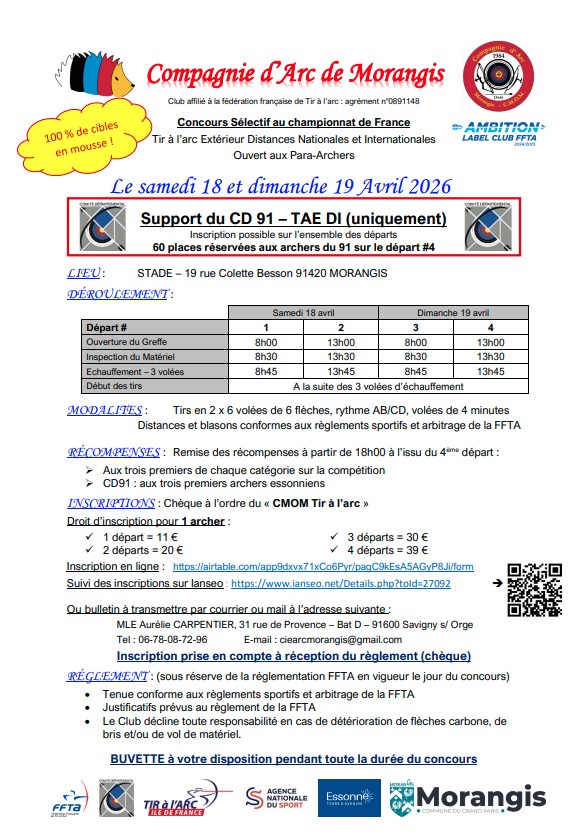 La Compagnie Club de Tir à l’Arc de Villabé N° SIRET : 44788148300013 N° d’affiliation FFTA : 0891165 N° d’agrément Jeunesse et Sport : 91S681 Les dernières actualités du club Modalités d’Inscription Saison 2026